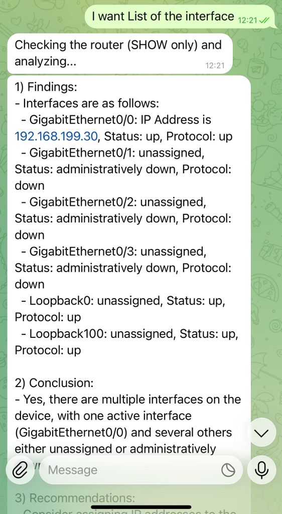 In this lab project, I built an AI-powered network assistant that: