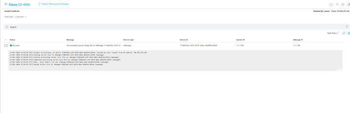 *Mar 3 13:24:28.266: %Cisco-SDWAN-cEdge01-action_notifier-6-INFO-1400002: R0/0: VCONFD_NOTIFIER: Notification: 3/3/2026 13:24:28 security-install-rcc severity-level:minor host-name:default system-ip:1.1.1.80