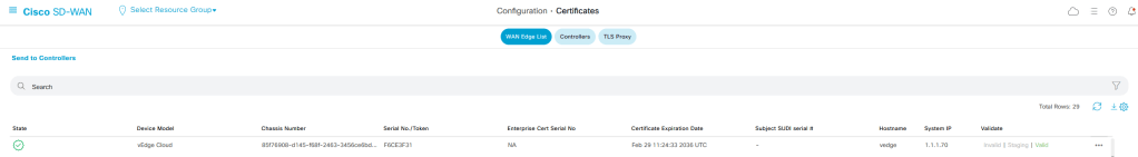 After uploding the wan edge list in vmanage we can onboard the edge devices using the token and chassis number of them:
