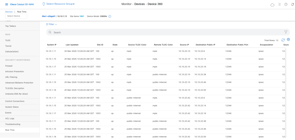 Now in cEdge we see only sessions between cEdge and DC: