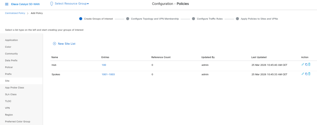If we use the wizard we will see the Groups of Interest, here we can define the objects which we can use later in our policy: