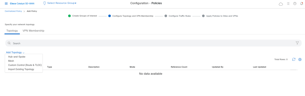 The next step is to define topology, we can use Hub-and_spoke or Custom control to create our topology: