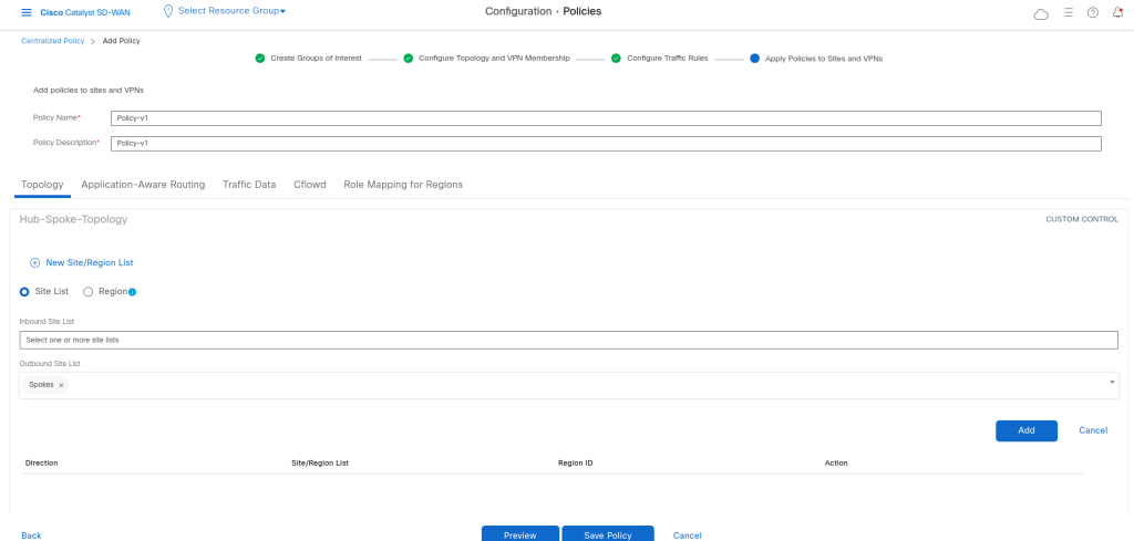 I want that the policy be to be enabled in outbound direction to the Branches/Spokes: