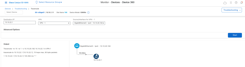 Trace route from DC site: