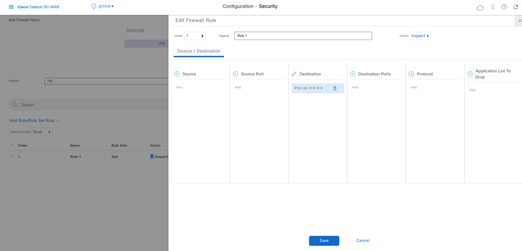 One of the basic built-in security functions in Cisco SD-WAN is the Zone-Based Firewall (ZBFW).