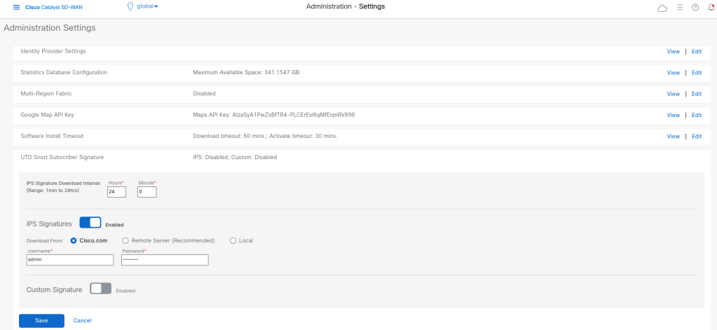 We should add our cisco credentials in vmanage that it can download the security signitures: