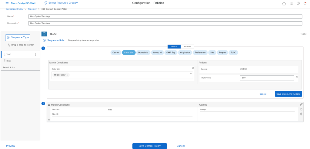 control-policy Hub-Spoke-Topology