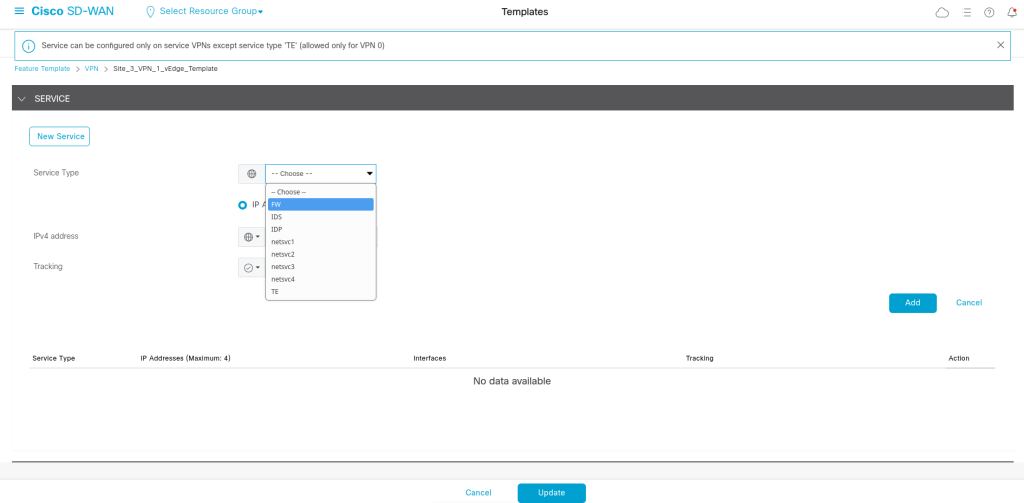 On the edge device which is providing the service (here DC) we should configure the service in feature template of that vpn: